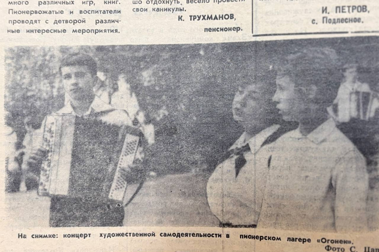 «Недавно мне в числе других ветеранов гражданской и Великой Отечественной войны довелось побывать в пионерском лагере «Огонёк», где отдыхают дети из города Маркса и сёл района.