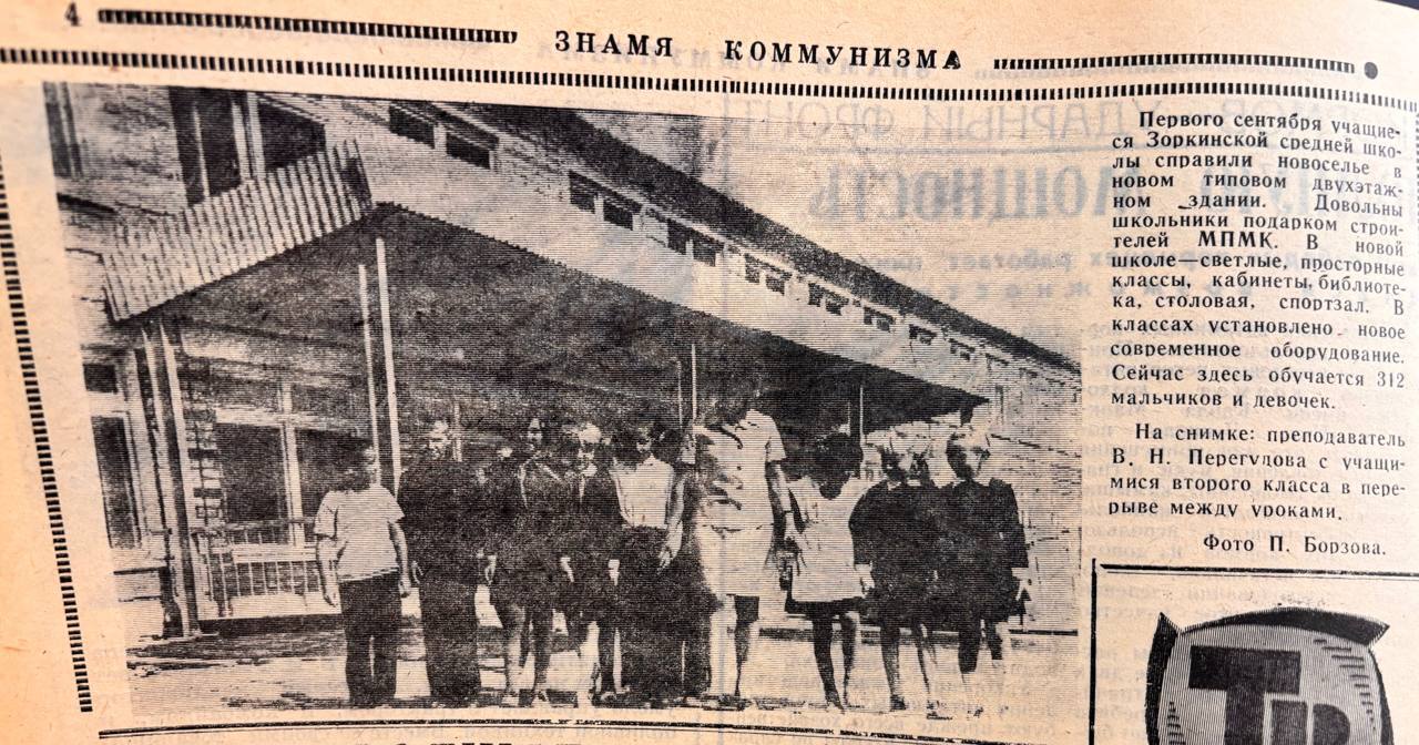 Пятьдесят лет назад, первого сентября 1975 года ученики Зоркинской средней школы справили новоселье в новом типовом двухэтажном здании. «Довольны школьники подарком строителей МПМК», — пишется на страницах районной газеты «Знамя
