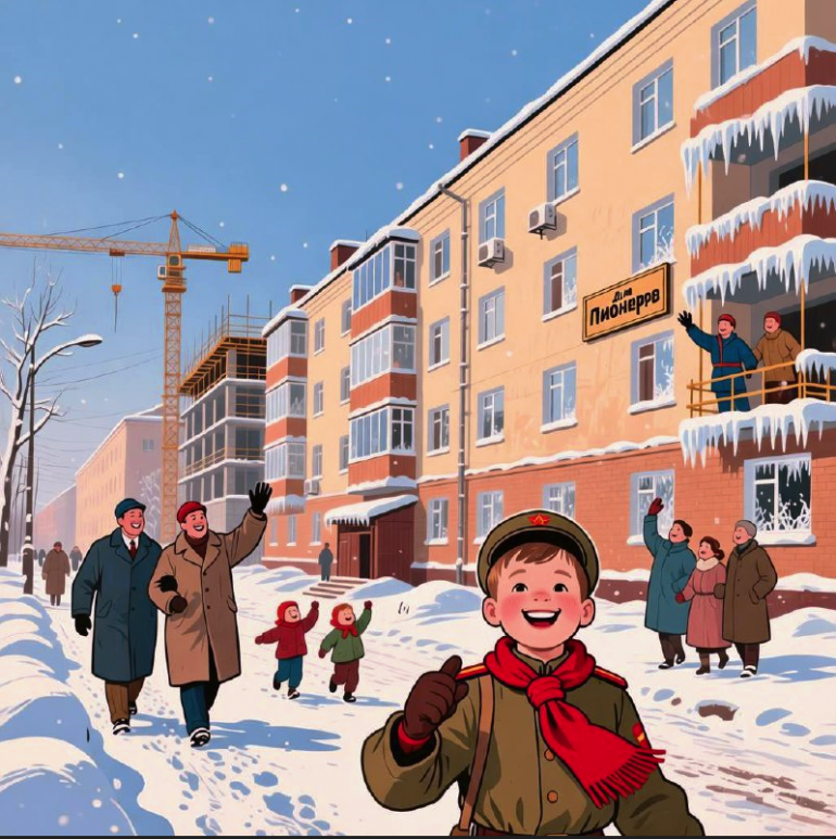 Новый год сулит ещё больший размах жилищного строительства. И это вызывает у людей радостную улыбку. Партия и правительство не жалеют денег ради счастья народа…