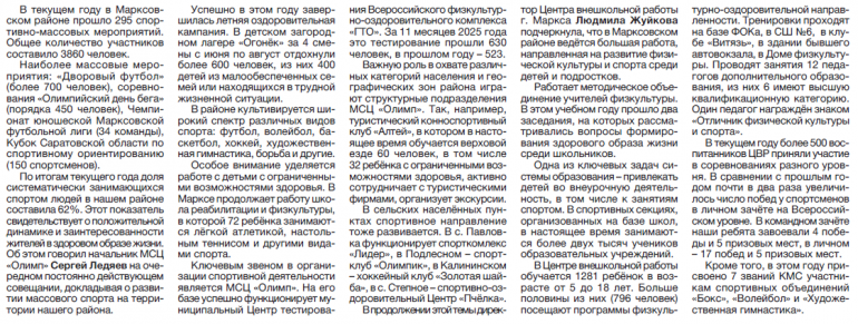 В текущем году в Марксовском районе прошло 295 спортивно-массовых мероприятий. Общее количество участников составило 3860 человек.