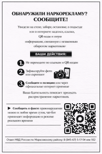 Если вы увидели на стенах зданий, заборах или других объектах надписи с контактами, сайтами, сленговыми названиями наркотиков или предложениями работы, связанные с наркотиками, действуйте по следующему алгоритму: