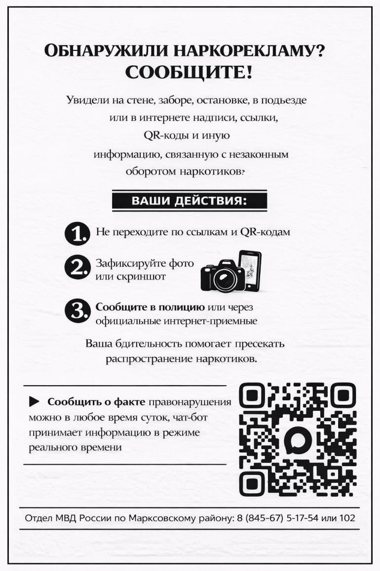 ❗Ваша бдительность — важный вклад в борьбу с распространением наркотиков! Если вы заметили подозрительные ссылки, аббревиатуры или контакты — не оставайтесь равнодушными, действуйте!
