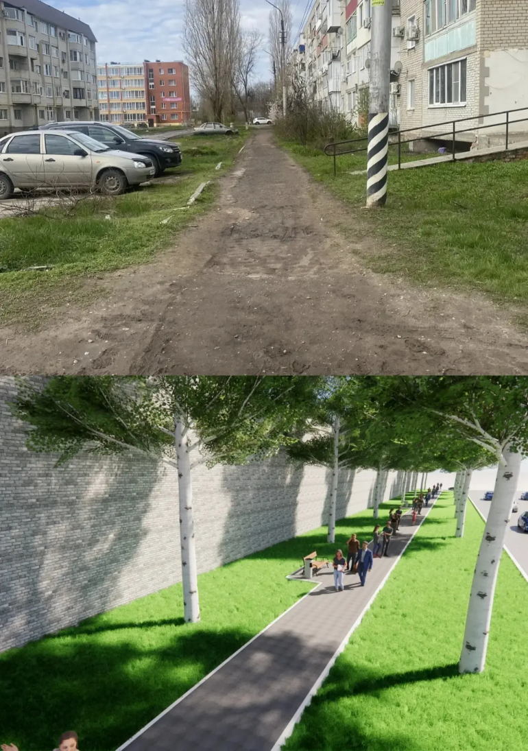 Планируются работы по обновлению твёрдого покрытия пешеходной зоны, остановка урн и озеленение.