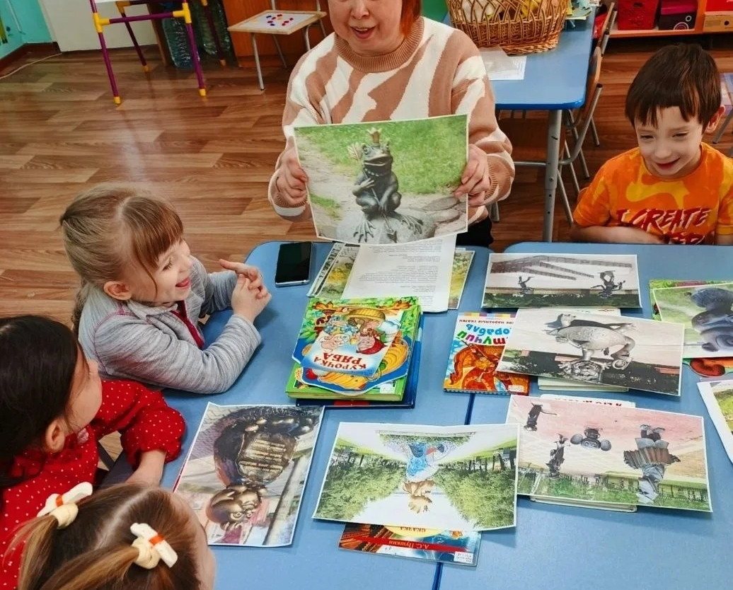 Ребята отметили этот день по особенному: отправились в увлекательную виртуальную экскурсию по городам с уникальными памятниками. Дети познакомились с воплощениями литературных героев — теми самыми персонажами, что родились в воображении писателей и художников. Среди них: Колобок, Курочка Ряба, Баба Яга, почтальон Печкин и многие другие.