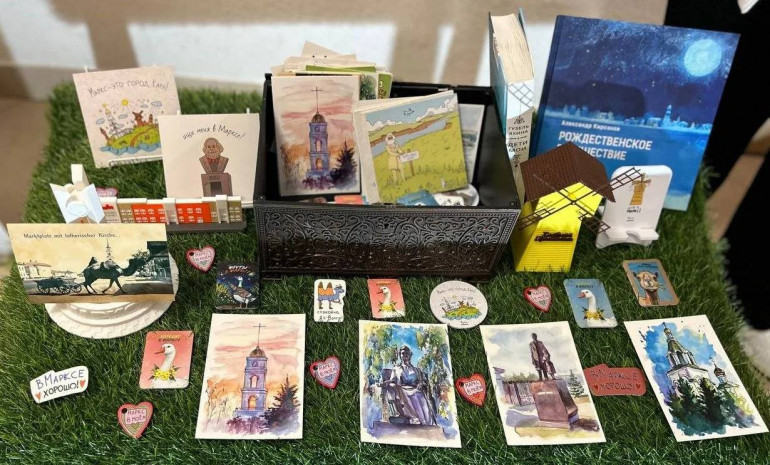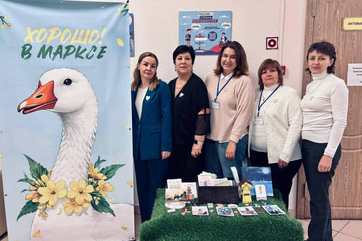 Центральным элементом выставочного пространства стала экспозиция, посвященная истории и культуре Маркса. Организовать выставку помогла Екатерина Ибятулина – блогер, активная мама одного из воспитанников детского сада № 15. Она познакомила участников форума с уникальными экспонатами, рассказывающими о прошлом и настоящем нашего города. Екатерина вместе с социальным педагогом Ириной Зарицкой провели для участников интерактивную викторину «Что есть в городе Марксе?».