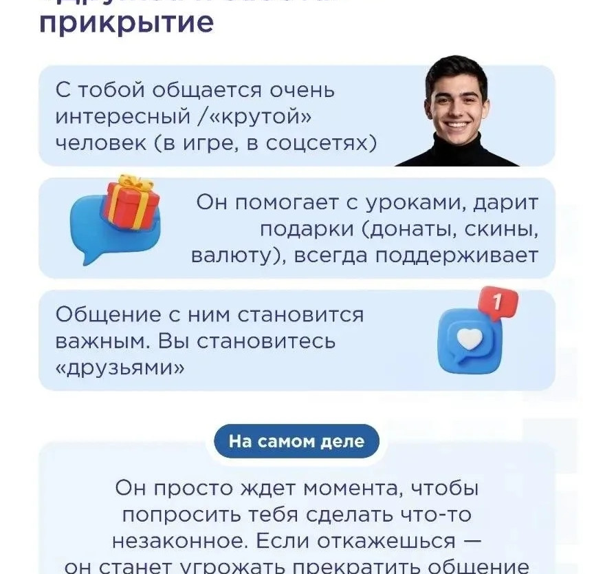 Каждому ребёнку важно знать, как злоумышленники могут ввести его в заблуждение — и заставить совершить преступление, даже если он сам не подозревает об этом