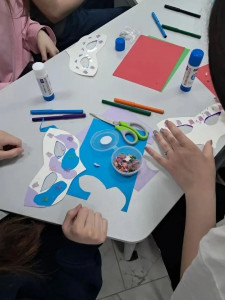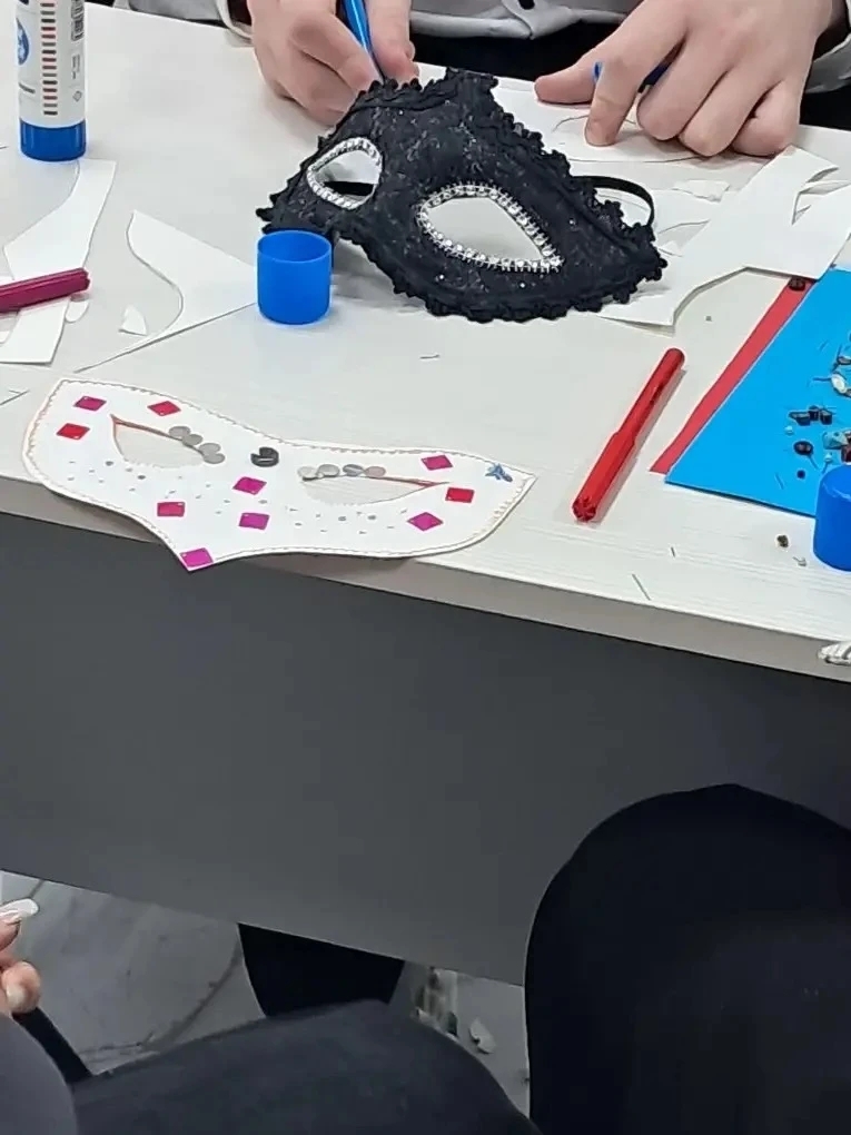 После познавательной части гостей ждал самый творческий этап вечера — мастер‑класс по изготовлению масок. В читальном зале развернулась настоящая мастерская: участники всех возрастов с энтузиазмом создавали свои творения. Как только последние маски были доработаны, читальный зал на время превратился в площадку настоящего карнавала: участники позировали для фотографий и демонстрировали свои уникальные творения.