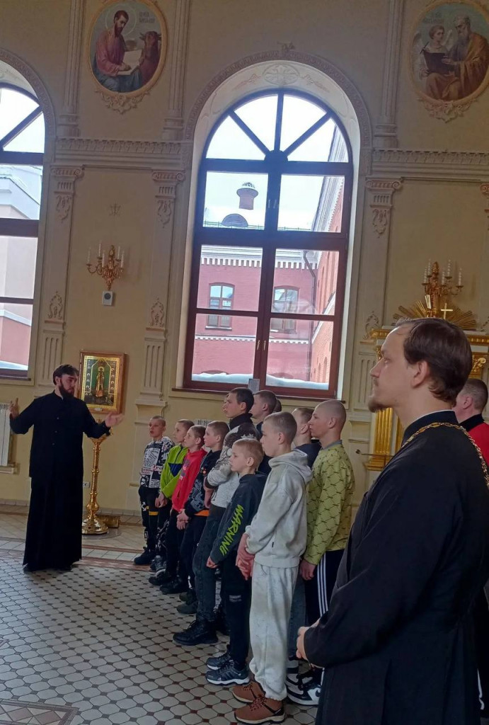 Затем школьники посетили Троицкий собор. Священник Михаил Фёдоров подробно рассказал им об истории строительства храма, его роли в жизни города и значении для православных верующих.