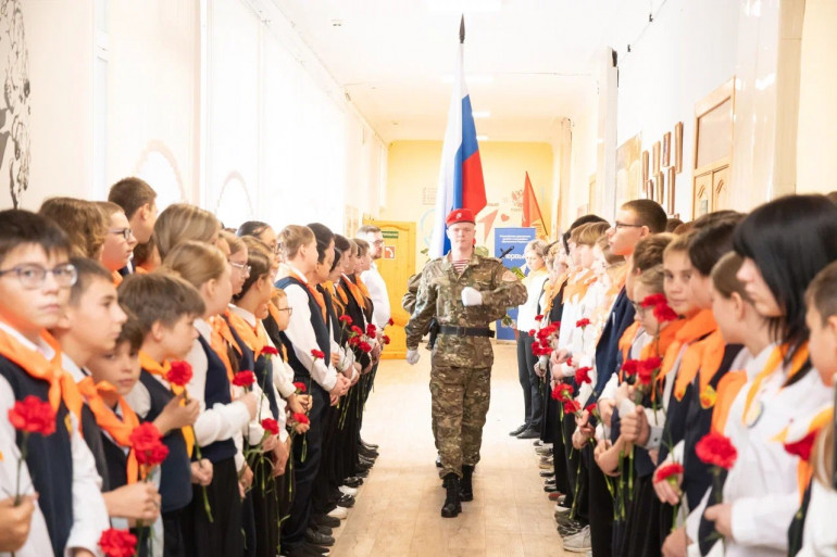 Герой Российской Федерации Александр Янклович, принявший участие в торжественной церемонии. Он выразил от себя лично, от депутатов Облдумы и губернатора области слова глубочайшей признательности родителям Вячеслава – Марине Александровне и Сайд Хусину Хамидовичу, за воспитание достойного сына своего Отечества. Временно исполняющая полномочия главы района Вера Прохорова взяв слово, призвала ребят бережно хранить имена тех, кто отдал жизнь за Родину, как напоминание о мужестве и беззаветной верности долгу. Их память собравшиеся почтили минутой молчания.. Среди выпускников Лицея немало парней, которые являются действующими участниками СВО, им и всем защитникам Отчества посвятили стихотворение «Спасибо за мирную жизнь!».