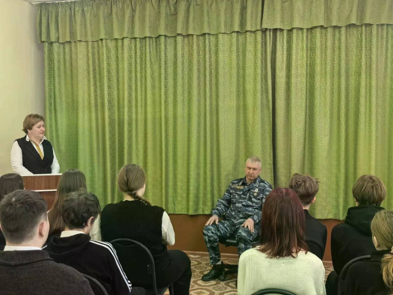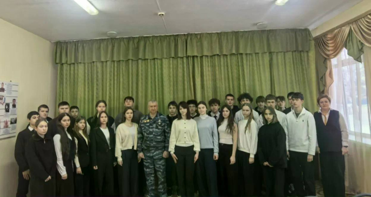 На встречу с учениками пришёл человек, чья биография является примером доблести и служения Отечеству – ветеран МВД, капитан полиции в отставке, ветеран боевых действий на Северном Кавказе Игорь Денисенко.