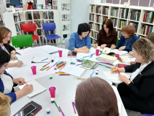 Особый интерес у присутствующих вызвало выступление сотрудников библиотеки Юлии Антоновой и Светланы Андреевой. Они поделились опытом работы и провели для педагогов увлекательную арт-терапевтическую сессию, которая помогла создать атмосферу творчества и вдохновения.