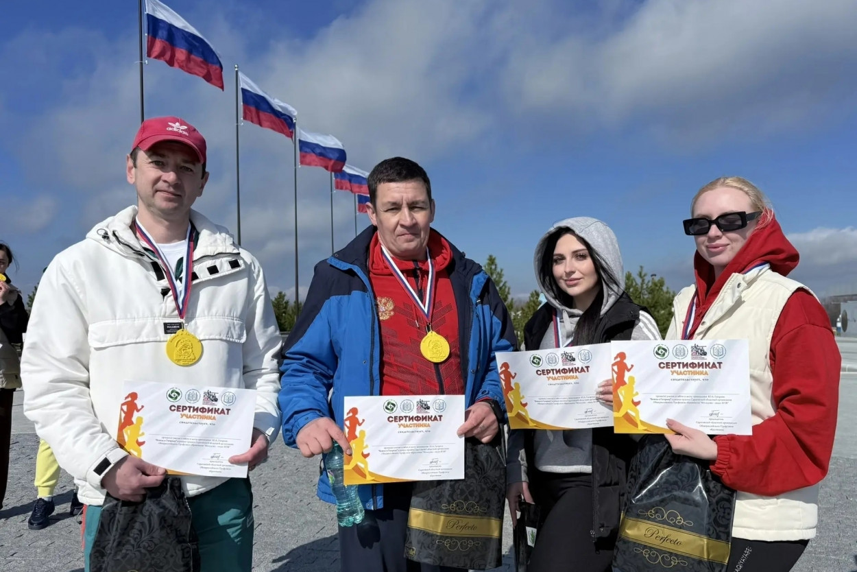 Учителя Марксовского района, Алексей Отрезной, Анастасия Адодина, Наталья Гепп и Иван Бурбах, вместе с коллегами из других районов региона стали участниками массового забега «Бежим к Гагарину».